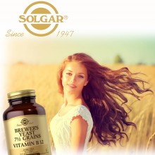 Solgar® Levadura de Cerveza con Vitamina B12 se presenta con esta vitamina añadida.