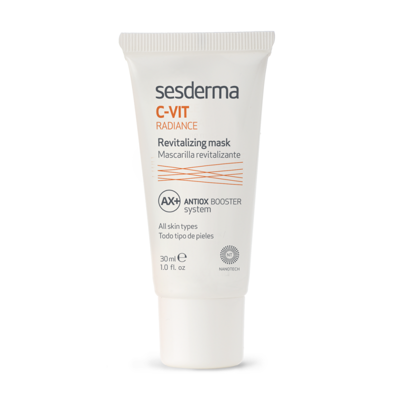 Nombre: C-VIT Radiance Mascarilla Composición: Con 5 tipos de vitamina C Fabricante: Sesderma Linea: C-VIT 5 Presentación: Tubo mascarilla 30ml Tipo de piel: todo tipo de pieles Día / Noche Producto apto para: Vegetarianos, Veganos. No testado en animales.