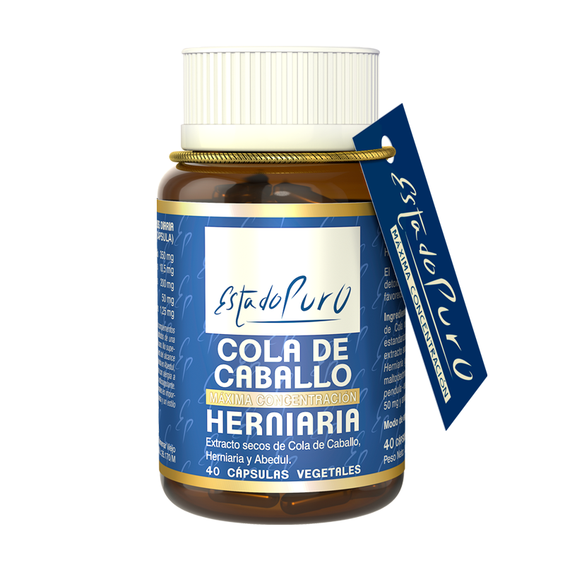 Nombre: Cola de Caballo Composición: Cola de Caballo , herniaria, abedul Marca: Estado Puro Laboratorios: Tongil Presentación: Frasco de 40 cápsulas vegetales.