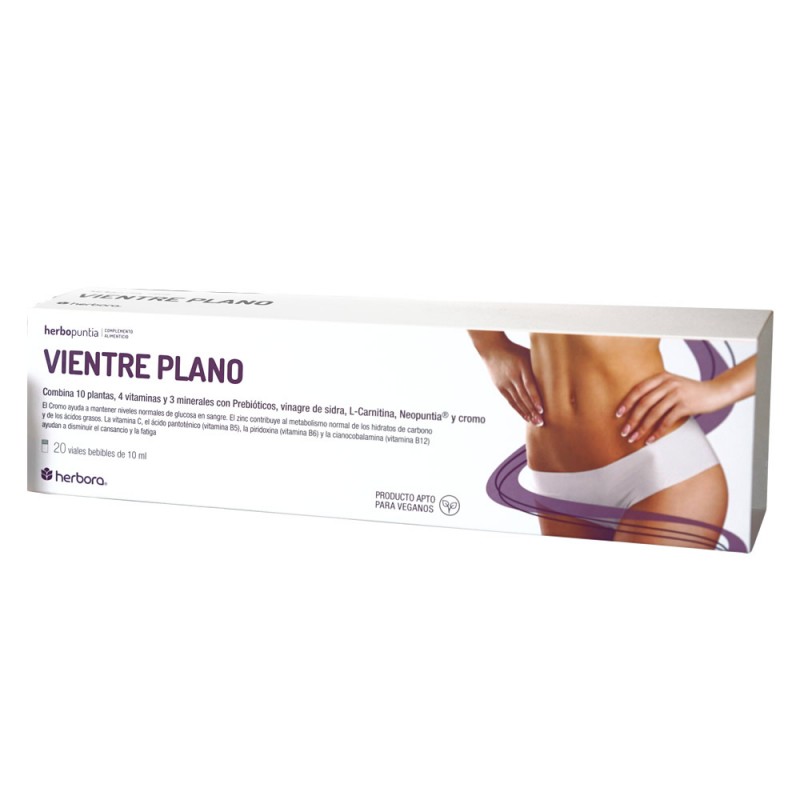 Vientre plano ayuda a la reducción de volumen y contorno, y facilita la eliminación del vientre hinchado. Combina Frucooligosacaridos con plantas, vitaminas y minerales. La alta concentración de fructooligosacaridos (efecto prebiótico) equilibra y sanea la flora intestinal, estimulando su tránsito. Y contribuyendo a reducir trastornos digestivos así como el exceso de gases.