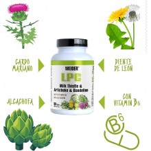 Cápsulas con Cardo Mariano (80% silimarina), Diente de Léon, Alcachofa y Vitamina B6.