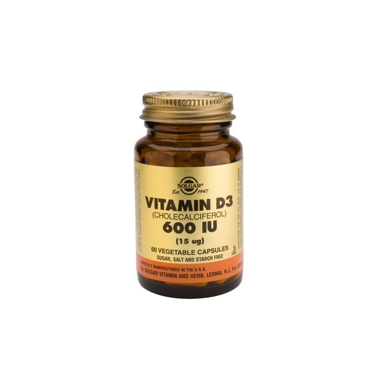 Nombre: vitamina D3 . Composición: Fórmula con Colecalciferol . Marca: Solgar Envase con: 60 Cáps de 600 IU ( 15 µg). Rendimiento: 2 meses