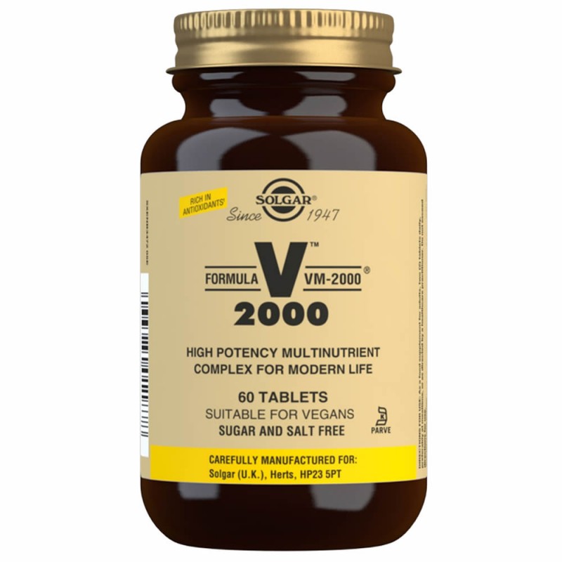 Nombre: Fórmula VM-2000 - Multivitamínico y Mineral. Composición: Fórmula multivitamínica y mineral con aminoácidos en una base herbaria y rico en antioxidantes . Marca: Solgar Envase con: 60 Comp .Rendimiento: 1 mes