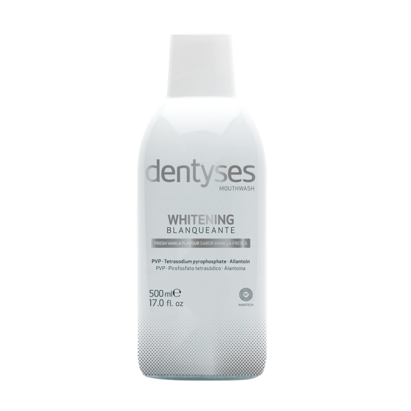 Nombre: Dentyses colutorio efecto blanqueante Fabricante: Sesderma Linea: Dentyses Composición: Flúor y Xilitol Presentación: 500ml Uso: bucodental Producto apto para: adultos a partir de 7 años No testado en animales.