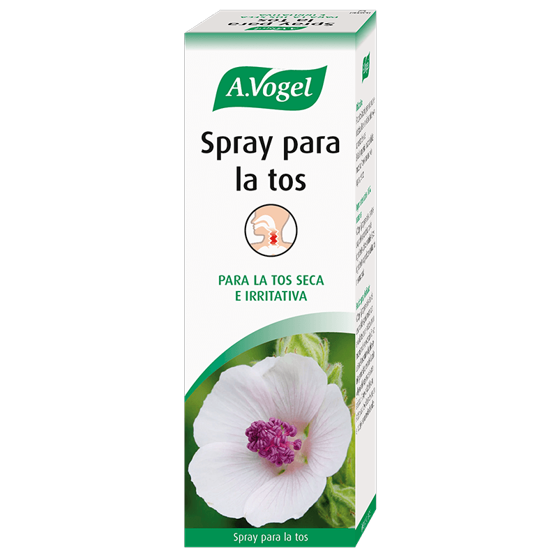 A. Vogel Spray para la tos es un Producto Sanitario que alivia la tos seca e irritativa, evita la progresiva irritación de las mucosas y tiene un efecto antitusivo y calmante de la tos.